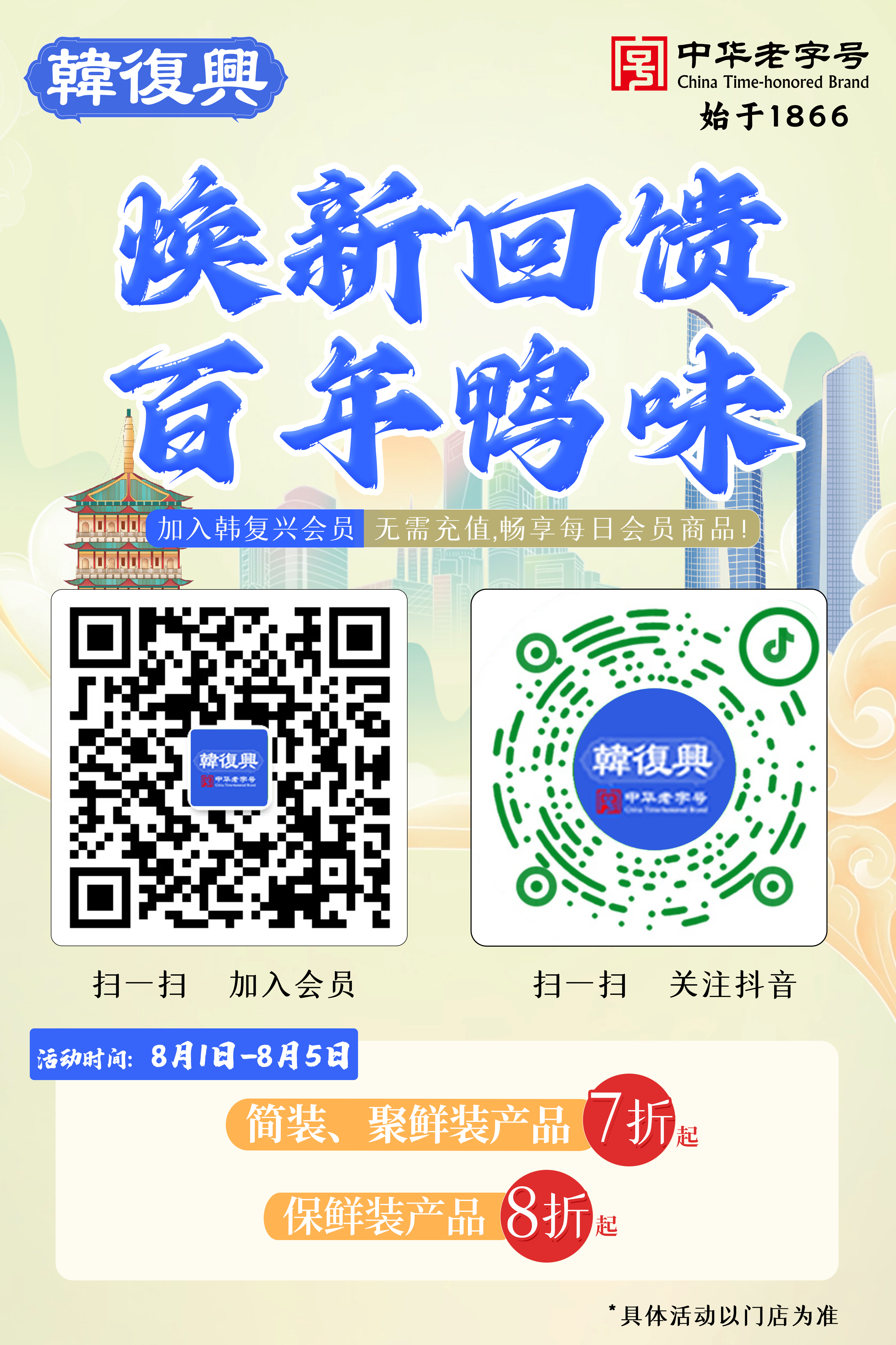 8月1日,中华老字号韩复兴湖北路店重装开业。继5月1日南湖店焕新归来后,这已是该品牌近期升级的第四家门店。即日起,湖北路店与南湖店同步开启为期半个月的双店同庆活动,以优惠与新体验回馈广大街坊邻里。