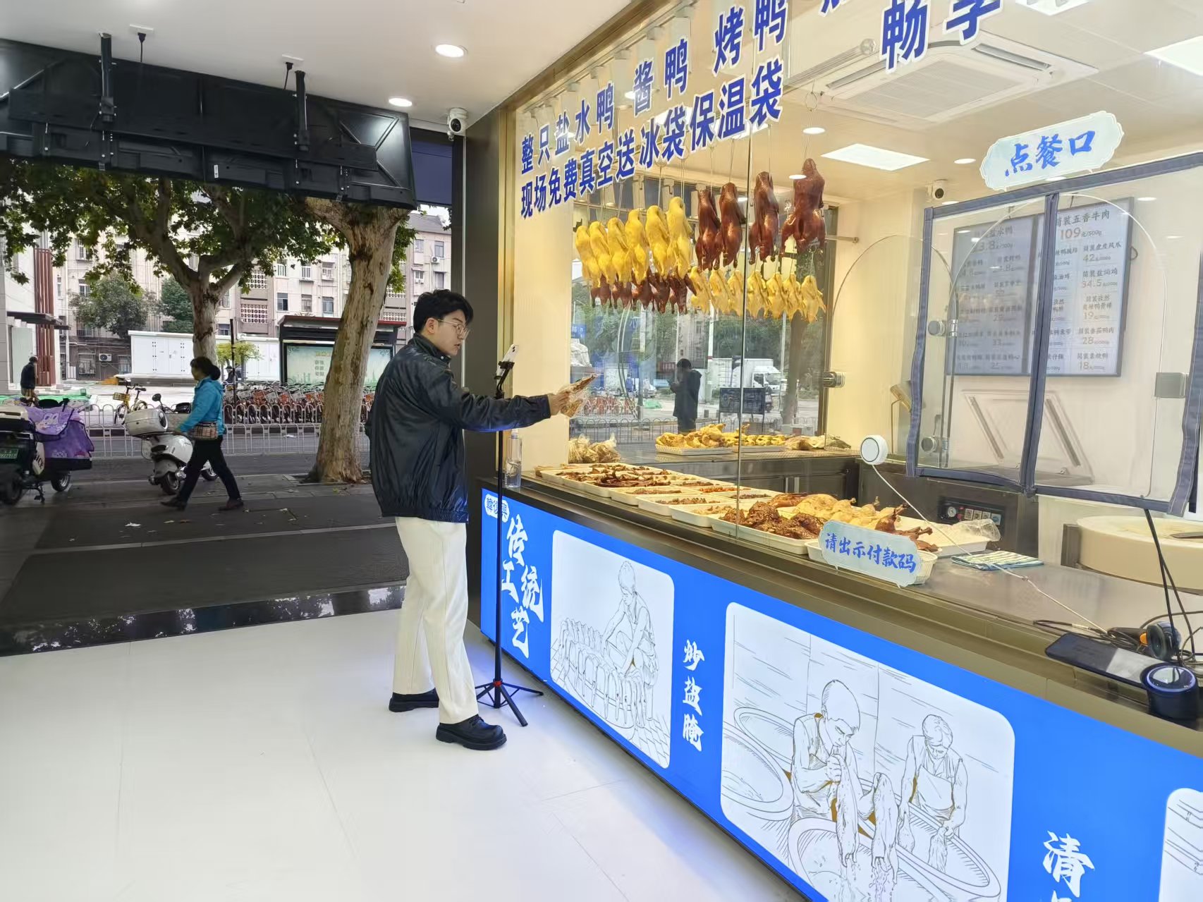 鲍教霞师傅笑着递过一块盐水鸭。这种试吃每天都有,先尝后买,新顾客的犹豫瞬间没了。