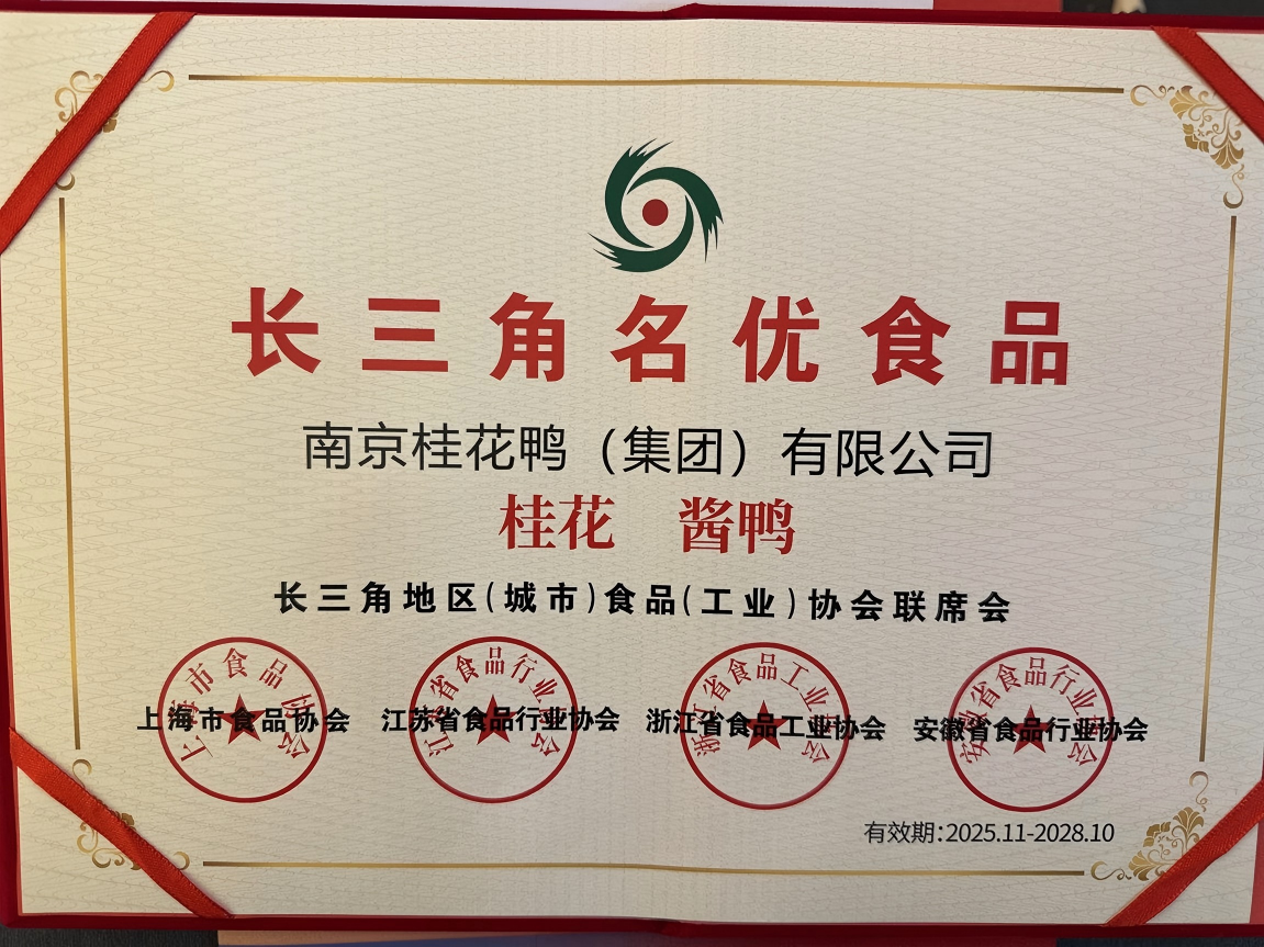 桂花酱鸭获评“长三角名优食品”称号