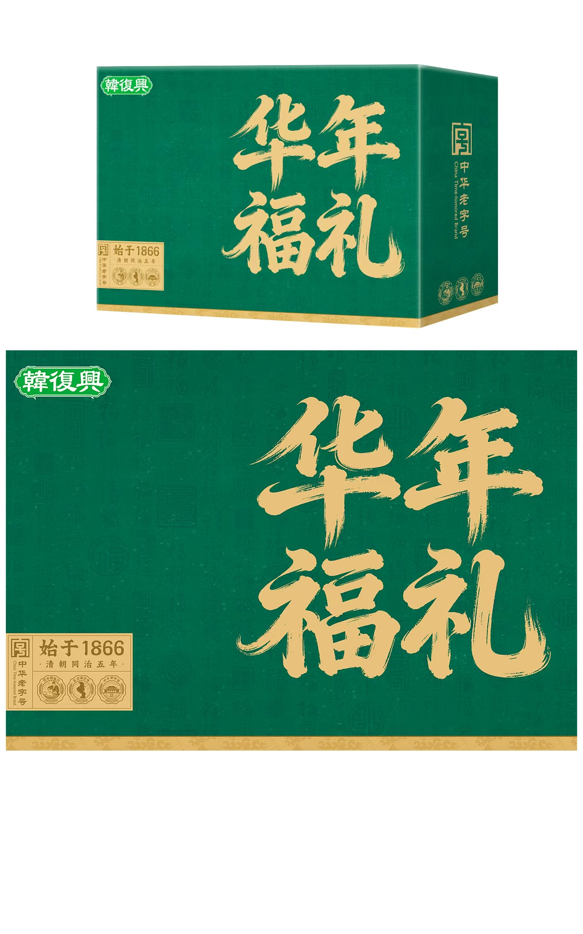 此外,“韩复兴—华年福礼”礼盒主打“华年似锦,以味传情”,适配佳节团圆、亲友馈赠及商务往来等多元场景。礼盒采用黛绿色百福暗纹设计,寓意福运绵延,华年福礼字样端庄大气,开合间尽显中式礼仪精髓。