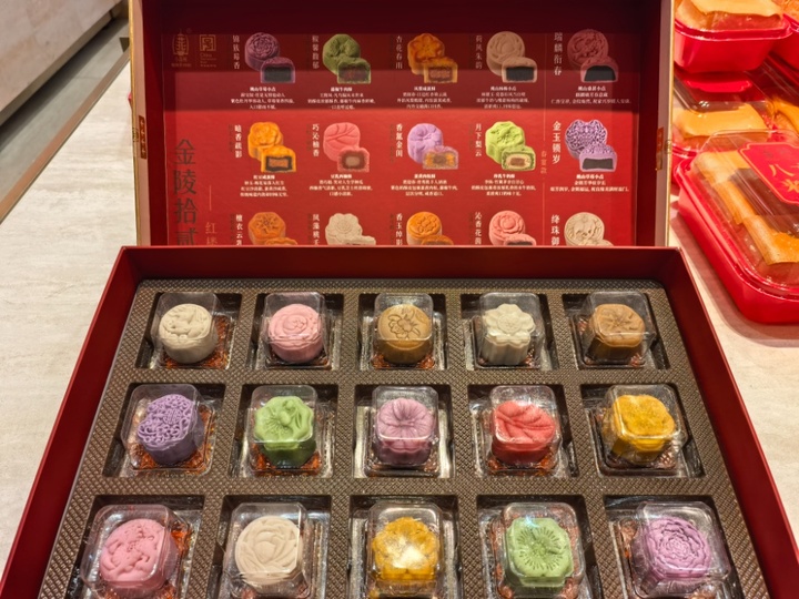 “这是今年新开的门店,金陵十二钗红楼春宴礼盒是春节期间推出的新品。”门店店长张静介绍,该系列以《红楼梦》金陵十二钗的人物命运与性格为灵感,将文学底蕴融入造型各异、风味独特的糕点之中,一经推出便成为爆款。记者看到,礼盒内的酥点均为独立精致包装,每一枚都雕刻着专属花卉纹样,暗合十二钗的花语与命运,从林黛玉的“荷风朱韵”到王熙凤的“椒馨馥郁”,从薛宝钗的“锦簇莓香”到史湘云的“沁香花茵”,每一款糕点都化作可品、可赏、可回味的文学符号。比如为林黛玉设计的“荷风朱韵”,选用牛奶桃山皮包裹杨梅内馅,酸甜交织的口感,似乎藏着她爱情里的酸酸甜甜。据了解,春节期间小苏州各门店照常营业,营收较去年增长约20%。